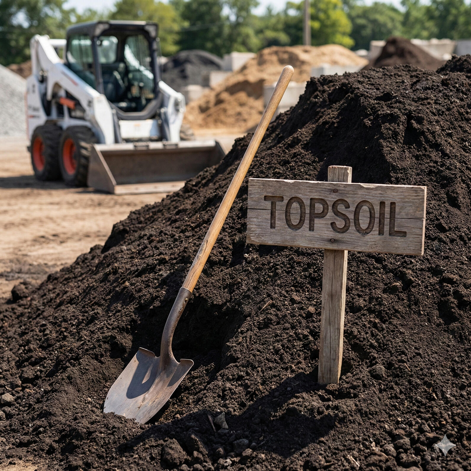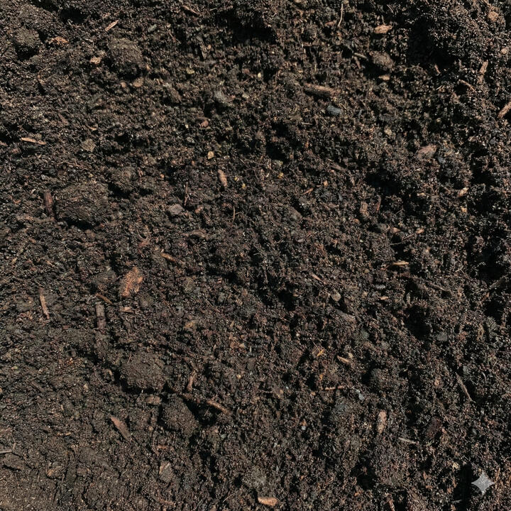 Screened topsoil, compost, and blends for lawns, grading, and planting.
